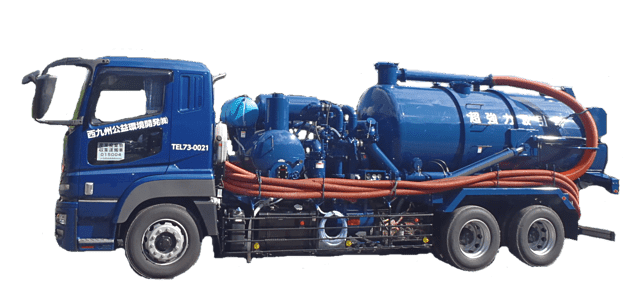 当社は、高圧洗浄車を保有しており、排管のつまり状況に応じてメイン、サブのホースを使い分け適切な 洗管方法を選択することが可能です。
